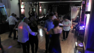 Ante tanto manjar, era preciso bajarlo, y de qué mejor forma que con unos buenos bailes. Comenzamos con una bachata, pero no faltó el merengue, la salsa, el vals inglés, el tango, la milonga, el chachachá, el vals vienés, la kizomba, las sevillanas, y claro, tampoco podían faltar los bailes en grupo, como la Gitana, que tanto gusta a algunas de nuestras alumnas.